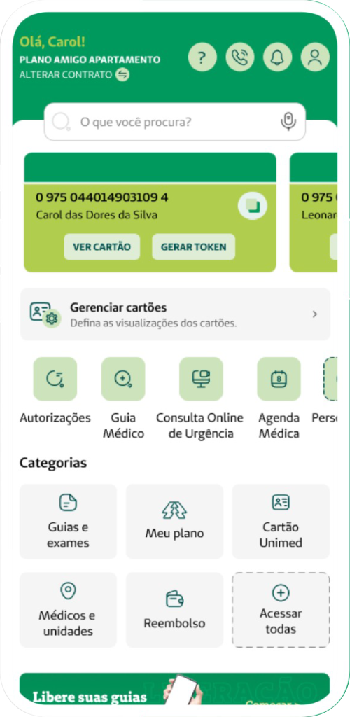 O novo app traz um visual mais moderno, simples e intuitivo, facilitando o acesso às principais funcionalidades e serviços de saúde. Com ele, você encontra o que precisa em poucos toques, de forma rápida e prática.