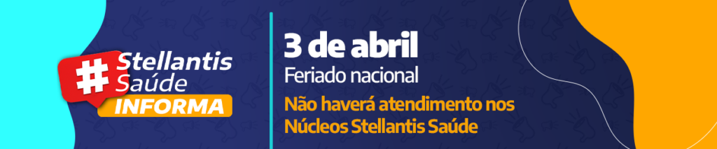 Na próxima sexta-feira, dia 3 de abril, os Núcleos Stellantis Saúde estarão fechados devido ao feriado nacional de Sexta-feira Santa. No sábado, dia 4 de abril, os atendimentos acontecem normalmente.