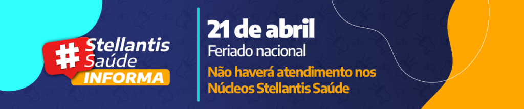 Na próxima terça-feira, dia 21 de abril, os Núcleos Stellantis Saúde estarão fechados devido ao feriado nacional do Dia de Tiradentes. Na quarta-feira, dia 22 de abril, os atendimentos acontecem normalmente.