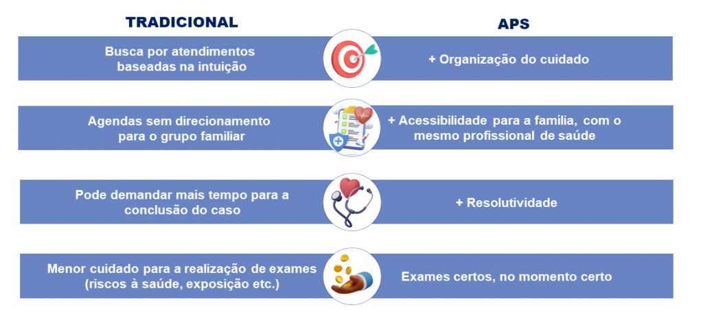 O Plano Stellantis Saúde foi desenvolvido a partir do conceito de Atenção Primária à Saúde (APS). Com ele, você ganha ainda mais eficiência, tranquilidade, comodidade e qualidade. Para ficar mais claro como ele funciona, veja abaixo a diferença entre o modelo tradicional e a nossa APS: